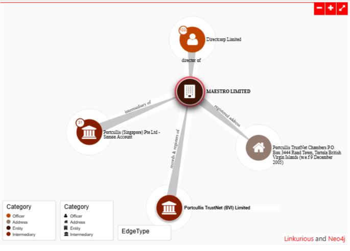 MAESTRO LIMITED appears in the ICIJ Offshore Leaks Database as an offshore entity linked to British Virgin Islands structures, with Directcorp Limited serving as its director and Portcullis TrustNet (BVI) Limited maintaining its records and registers. This configuration exemplifies typical offshore anonymity mechanisms, where corporate directors and service providers obscure underlying ownership and control, facilitating potential uses in international finance networks. Further investigation into connected officers, intermediaries, and related entities would reveal the broader web of relationships, underscoring MAESTRO LIMITED’s position within the expansive ecosystem of secrecy jurisdictions exposed by the ICIJ.