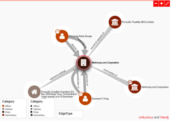 NetIncorp.com Corporation appears in the ICIJ Offshore Leaks Database as an offshore entity managed through secrecy jurisdictions, with Portcullis TrustNet (BVI) Limited serving as the intermediary responsible for records and registers. Key officers include Petagaye Daley-Savage, who acted as Director from June 25, 1999, and Shareholder, alongside Daimeon F. Fong, who held roles as Director from January 3, 1995, and Shareholder. This configuration underscores the entity’s integration into broader offshore networks, where such intermediaries and officers facilitate opaque corporate structures often linked to asset concealment or tax optimization strategies.