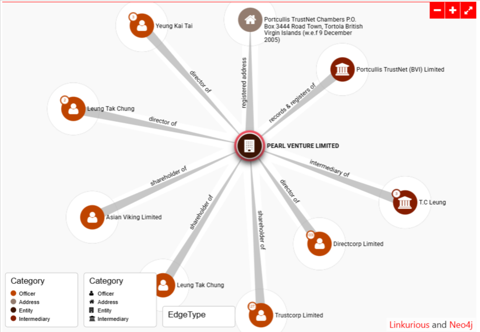 PEARL VENTURE LIMITED is an offshore entity listed in the ICIJ Offshore Leaks Database, which highlights its involvement in the global offshore network used for structuring ownership and financial interests. This company is linked to several notable officers, including Leung Tak Chung, who serves as both a shareholder and former director, and Yeung Kai Tai, who held a directorship from 1994 until 2006. The entity also has connections with other corporate shareholders such as Asian Viking Limited and Trustcorp Limited, and its official records and registers are maintained by the intermediary Portcullis TrustNet (BVI) Limited. The database profile suggests PEARL VENTURE LIMITED is part of a complex offshore arrangement common within British Virgin Islands jurisdictions, underscoring typical structures used to obscure beneficial ownership and enhance financial privacy.