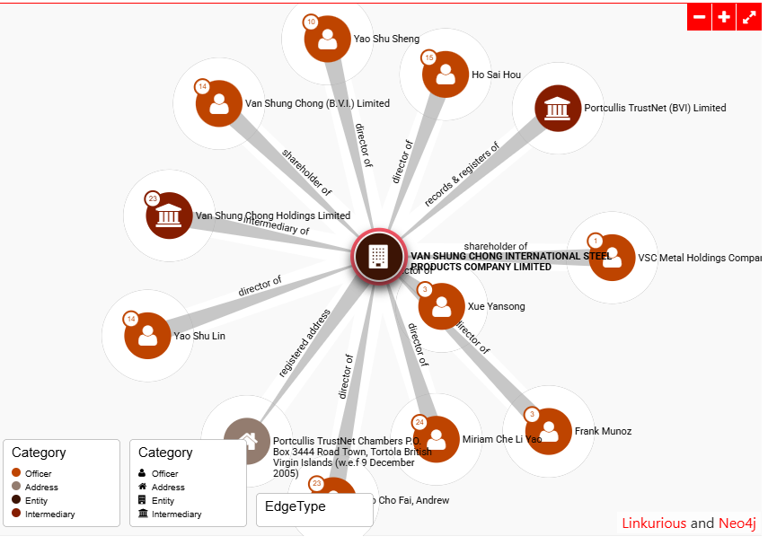 VAN SHUNG CHONG INTERNATIONAL STEEL PRODUCTS COMPANY LIMITED is a British Virgin Islands-incorporated offshore entity, established on April 24, 1995, and listed as active in the ICIJ Offshore Leaks Database. It maintains intricate connections within the Van Shung Chong corporate network, including shareholders such as VSC Metal Holdings Company Limited and Van Shung Chong (B.V.I.) Limited, alongside a series of directors spanning 1995 to 2008—namely Xue Yansong, Frank Munoz, Yao Shu Sheng, Yao Shu Lin, Ho Sai Hou, Yao Cho Fai (Andrew), and Miriam Che Li Yao. Further ties extend to intermediary Portcullis TrustNet (BVI) Limited for records and registers, and reciprocal relationships with Van Shung Chong Holdings Limited, positioning the entity as a key node in this steel-related offshore structure.