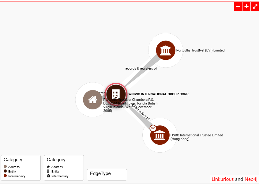 WINVIC INTERNATIONAL GROUP CORP. appears in the ICIJ Offshore Leaks Database’s network graph (node 124246) as a now-struck-off British Virgin Islands entity incorporated on 10-AUG-1995, illustrating its position within a complex web of offshore structures from leaks like Offshore Leaks and Panama Papers. The visualization centrally maps the company to intermediary roles, linking it to other entities such as HSBC International Trustee Limited (Hong Kong), WINNING INTERNATIONAL INVESTMENTS LIMITED, and similar BVI firms like ALL JOLI LIMITED, alongside potential officer and address nodes that denote jurisdictional ties primarily in the British Virgin Islands. These connections highlight opaque relational pathways typical of offshore networks, where intermediaries facilitate entity management, underscoring the graph’s utility in tracing influence flows and structural dependencies for investigative scrutiny.